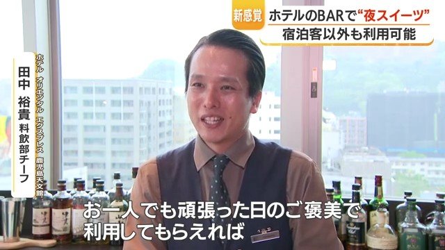 【動画で見る▶ホテルバーで「夜カフェ」 鹿児島・天文館の最上階で味わう知覧茶ティラミスと贅沢パフェ】
