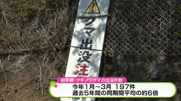 岩手県によるとツキノワグマの2026年1月から3月までの出没件数は197件と過去5年間の平均と比較して約6倍になっているそうです。