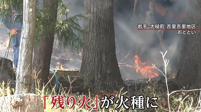 消防団によると、ここは一度は消火した場所でしたが、「残り火」が火種となり再び燃えたといいます。