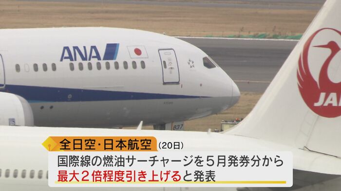 そんな中、全日空と日本航空は、国際線の航空運賃に上乗せしている『燃油サーチャージ』を2026年5月発券分から最大2倍程度引き上げると発表した。