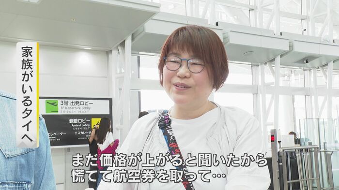 福岡空港で、これから家族のいるタイへ向かうという女性に話を聞くと、「まだまだ価格が上がるって聞いたから慌てて早く航空券を取って・・・。5月から燃油サーチャージが2倍になるんだったら、家族に会いに行けない」と困り顔。