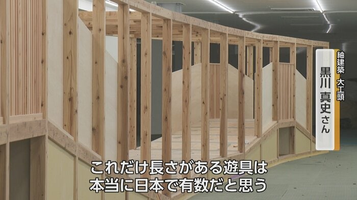富山市のファボーレ別棟に整備中の全天候型屋内公園「BBTパーク」。その目玉となる全長36メートルの巨大遊具が愛知から富山へと運び込まれ、いよいよ完成が近づいてきた。担当の大工頭・黒川真史さんは「これだけ長さがある遊具は日本でも有数だと思う」と語る。天候に左右されず子どもたちが思いっきり遊べる"みんなの居場所"が、富山に誕生しようとしている。