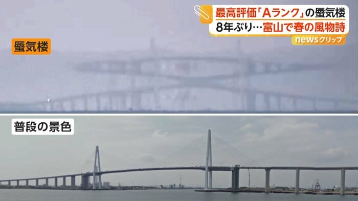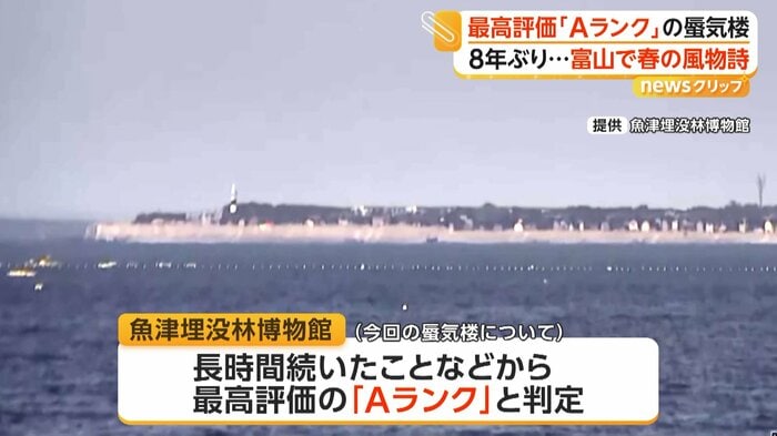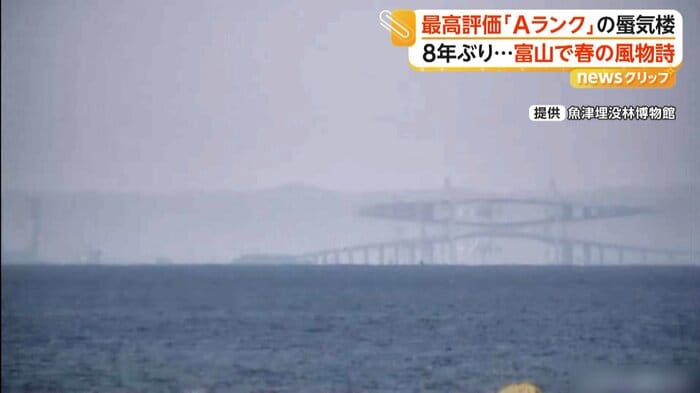 富山湾で蜃気楼が観測された。その鮮明度と長時間続いたことから、地元博物館は最高評価の「Aランク」と判定した。