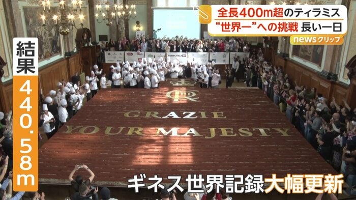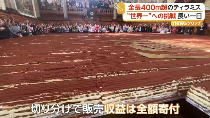 この世界一長いティラミスは切り分けて販売され、収益は慈善団体に全額寄付されるという。