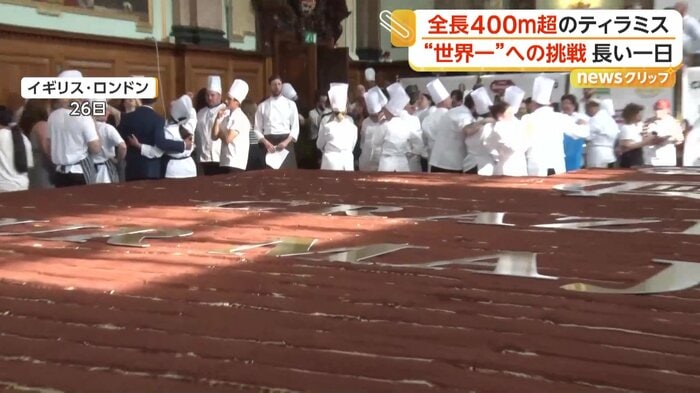 イギリス・ロンドンで世界最長のティラミス作りが行われた。