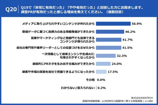 Q20. Q19で「非常に有効だった」「やや有効だった」と回答した方にお聞きします。調査PRが有効だったと感じる理由を教えてください。(複数回答)
