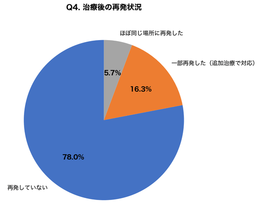 ・CO2レーザー・電気焼灼法による治療後「再発しなかった」と回答した人が78.0%