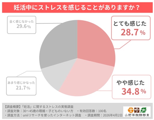 株式会社言歩木(所在地:千葉県市川市、代表者:島田 斗牛)は、お子さまのいない30~45歳既婚女性100名を対象に「妊活」に関する認識と不安調査を実施致しました。