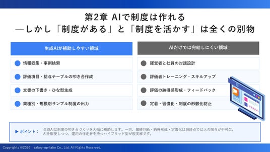株式会社給与アップ研究所(東京都渋谷区、代表取締役:高橋恭介)は、AI時代における人事評価制度の本質と、失敗しない支援会社の選び方をまとめた実務資料「AI時代の人事評価制度 失敗しない“支援会社”の選び方ガイド」を公開しました。