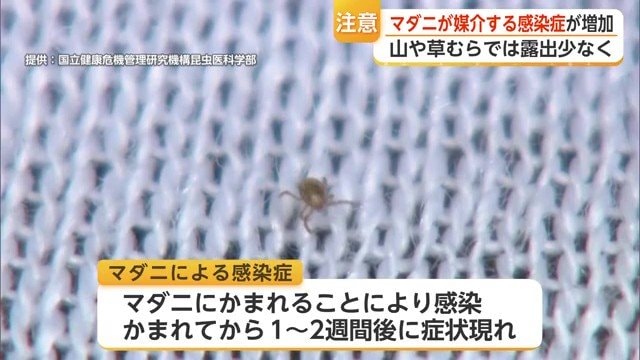 県は、山や草むらなどで活動する場合は肌の露出を少なくし、かまれたら自分で取り除かず、すぐに医療機関を受診するよう呼びかけている。