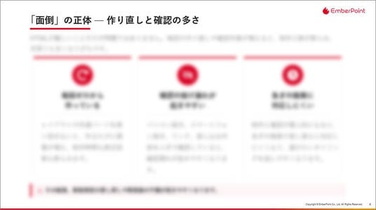 ●非効率な工程: 毎回一から作成することで生じる工数増加への対策