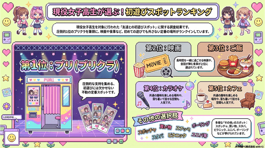 ~ 初遊びの鉄板は「プリクラ」、回答者の約半数が支持。カギは"会話×写真×ハシゴ"の三拍子 ~