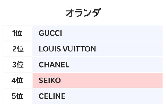 ■オランダでは「GUCCI」が首位に浮上、「CELINE」が新たにランクイン
