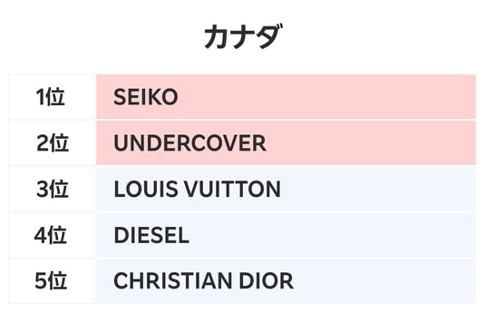 ■カナダでは日本のブランド「SEIKO」と「UNDERCOVER」が1位・2位に