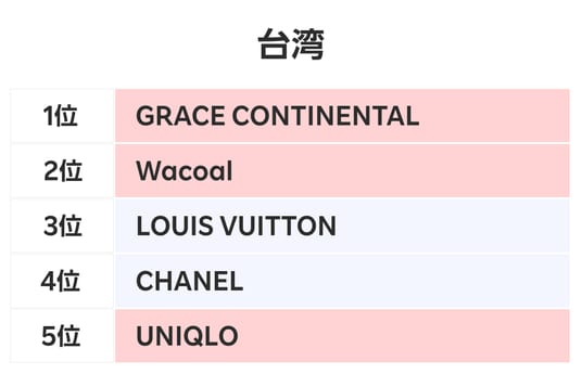 ■台湾では日本のブランド「GRACE CONTINENTAL」「Wacoal」「UNIQLO」がランクイン