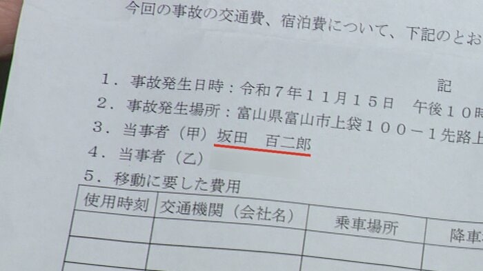 その後、男性のもとに届いた相手側の保険会社からの書類には、坂田被告の名前がありました。
