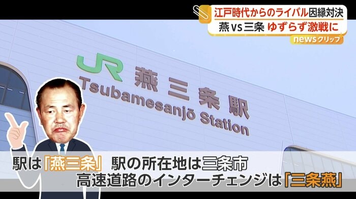 見かねた元総理の田中角栄氏が…「駅は“燕三条”、駅の所在地は“三条市”、高速道路のインターチェンジは“三条燕”とする」と裁定した。