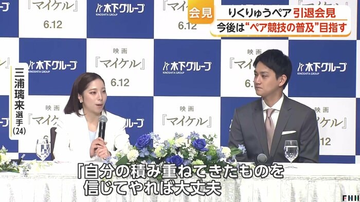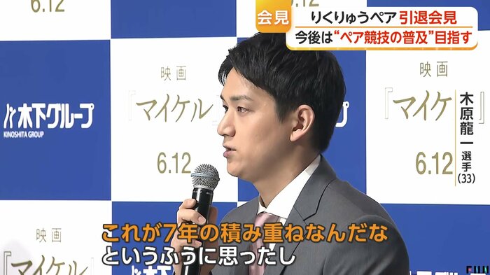 フィギュアスケート「りくりゅうペア」が引退会見を開き、7年間の歩みと互いへの感謝を語った。