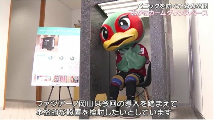サッカーJ1・ファジアーノ岡山の3月のホーム戦、スタジアムの4階に発達障害などがある子供でも安心して観戦できるようにカームダウンスペースを備えた専用のスペースが試験的に設けられた。