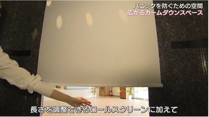 こうした声を受けて3年前、光や人の視線などの刺激から逃れパニックになるのを防ぐための空間「カームダウンスペース」が開発された。