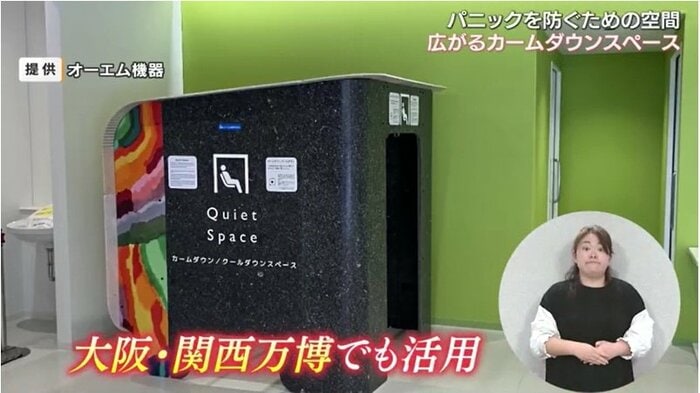 感覚過敏の啓発などを行う東京の感覚過敏研究所によると、カームダウンスペースは3月の時点で国内18の空港に設置されている。オーエム機器が開発した設備も岡山空港や大学など6ヵ所に設置され、2025年の大阪・関西万博でも活用された。