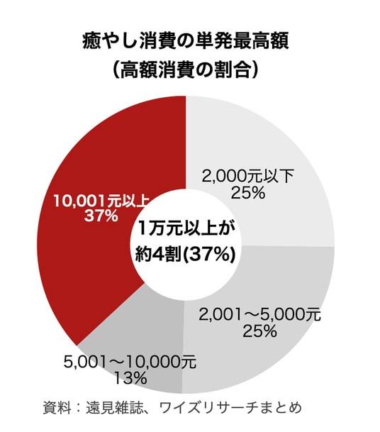 (図1)癒やし消費の単発最高額に関するデータ。1万元以上の高額消費が全体の37%に上り、台湾大人の「癒やし」への消費意欲の高さが分かります。