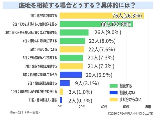 - 2位:そのまま保有して地代収入を得る:66件(22.8%)