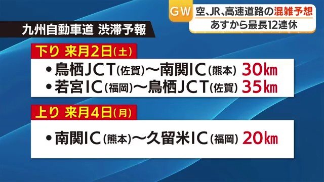 (動画で見る▶九州自動車道で30キロ以上の渋滞も GW12連休、鹿児島発着の混雑ピークはいつ?)