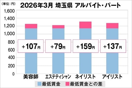埼玉県の美容業界における採用時給料に関する調査結果(アルバイト・パート)2026年3月美プロ調べ