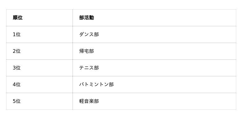 - 所属部活動1位は「ダンス部」、2位は「帰宅部」ダンス部の人気はTikTokやSNS文化の影響がうかがえる一方、帰宅部の2位ランクインは、部活動に縛られない自由な時間の使い方を重視するZ世代の価値観を反映しています。