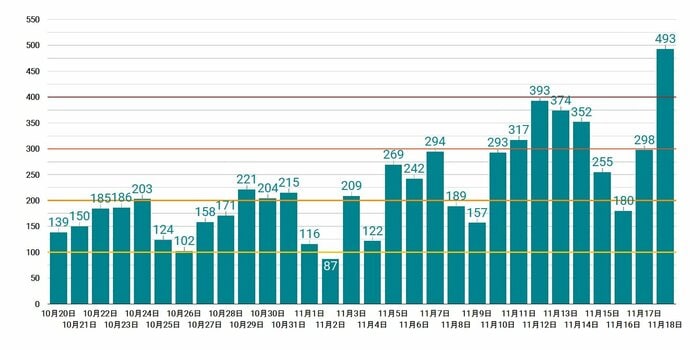 新型コロナウイルス 【速報】東京都で新たに493人の感染確認 過去最多 FNN 2020年11月18日 水曜 午後2:19 東京都で、きょう新たに493人が新型コロナウイルスに感染していたことが分かりました。 都内の1日の感染者数としては過去最多となります。 この記事の画像(2枚) FNN 1 2 新型コロナウイルスの他の記事 愛媛でインフルエンザ感染急増 西条保健所エリアは新型コロナも“注意報レベル”県が予防呼びかけ【愛媛】 都道府県 2025年10月31日 負債は約2500万円 金属製品の塗装会社が破産手続き開始決定受ける 新型コロナ禍の受注減少が回復せず 経済 2025年10月31日 いつもより早い…インフルエンザが1カ月早く流行期に ワクチン接種と基本的な感染症対策を ライフ 2025年10月29日 『住んでいる街で値段違いすぎ』 コロナワクチン接種の自己負担 国の補助なくなり自治体の“格差”広がる【福岡発】 社会 2025年10月24日 一覧ページへ