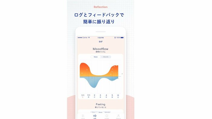 さらにこのアプリにはAIが搭載され、書き込み内容から利用者の思考や感情を分析して、結果をフィードバックする。