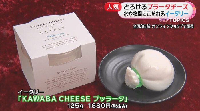 イタリア食材を専門に扱うイータリーのブランドチーズ「KAWABA CHEESE ブッラータ」(125g 税抜1680円)は、本場イタリアで修業を積んだ職人がイタリアの製法と材料の鮮度にこだわって作る本格派。