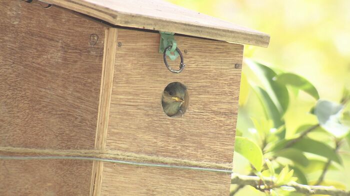 ひなを狙うカラスやネコから守るために、巣箱に鍵も取り付け、園児たちは毎日、巣箱を観察している。