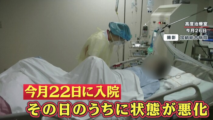 本来、加納総合病院が受け入れるのは中等症までですが、大阪府の医療がひっ迫しているためそのまま治療を続けています。