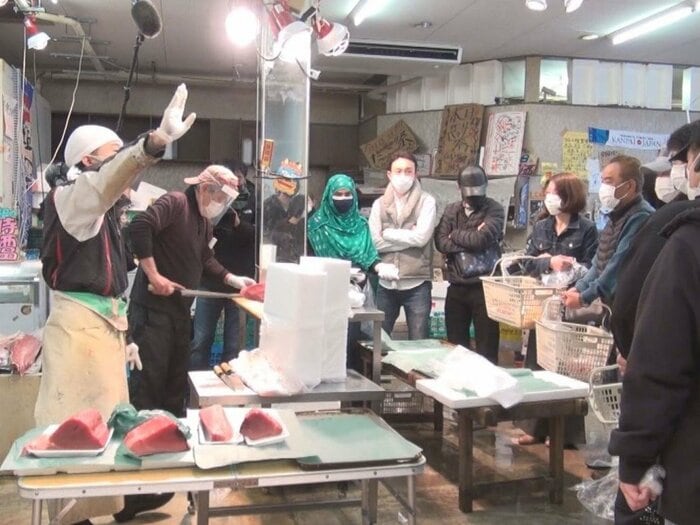 切り落として即値付け…普段より更に値打ちの人気イベント「マグロ解体ショー」