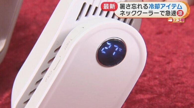 去年は両手を空けられる首掛けタイプの扇風機が人気でしたが、今年は直接首筋を冷やせる”ネッククーラー”と言われるタイプが人気