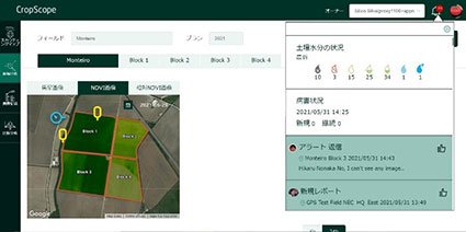 AIアドバイス以外でも、すでに国内では人工衛星画像からの植生情報や土壌水分のセンサー情報を可視化する機能を使い営農判断にご活用いただいております。