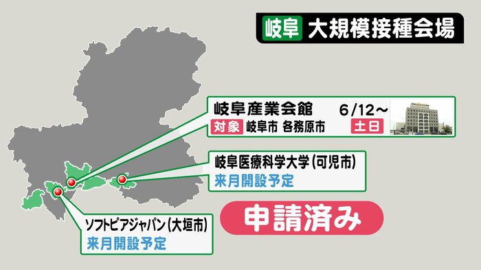 また、岐阜県の大規模接種は、現在は岐阜産業会館の1カ所で岐阜市と各務原市を対象に実施されている。