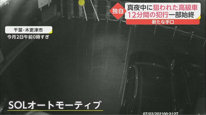 防犯カメラ映像がとらえた高級車窃盗の一部始終。どのようにして車を盗んでいったのだろうか。