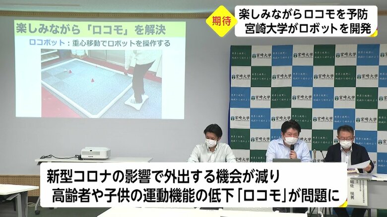 宮崎大学は高齢者や子どもの運動機能の低下「ロコモ」を防ぐため、楽しく運動ができるロボットを開発した。