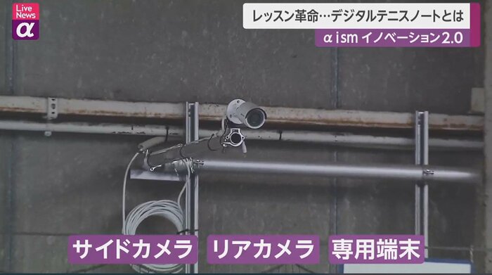 プロテニス選手も所属する神奈川県のテニススクール。新たに取り入れたのは、プレーを解析するITデバイス「MOJJO」。フランス発、アジア初上陸。必要な設備はカメラ2台と専用の端末のみ。