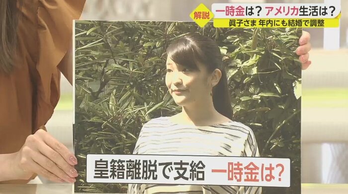 一時金というのは、皇室としての品位を保つ生活のために国から給付されるものなので、眞子さまのご意向で決まるものではありません。皇室経済法という法律に基づいているので、これから政府の検討が必要になってくると思います。