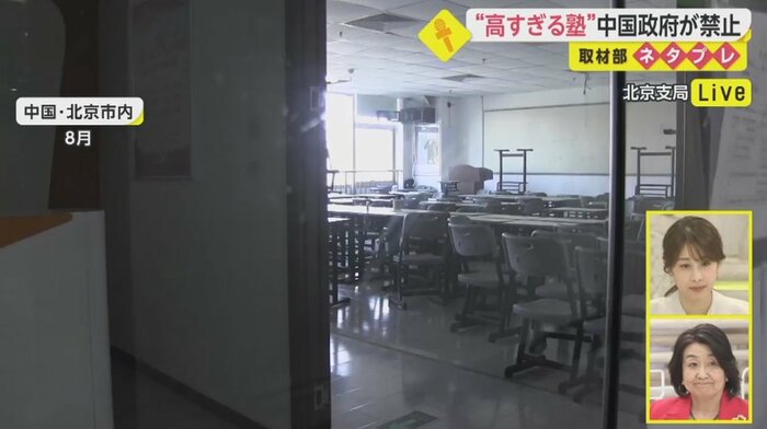 2021年8月、中国北京市内にある中学生・高校生に理科を教える塾だということですが、今封鎖されていて机や椅子が雑然と置かれたままになっています。