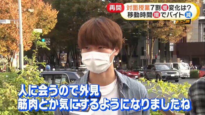 人に会うので外見、筋肉とか気にするようになりましたね。対面授業になったんでジム通うようになりましたね