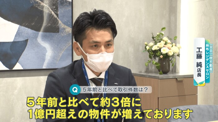 5年前と比べて約3倍に1億円超えの物件が増えております。