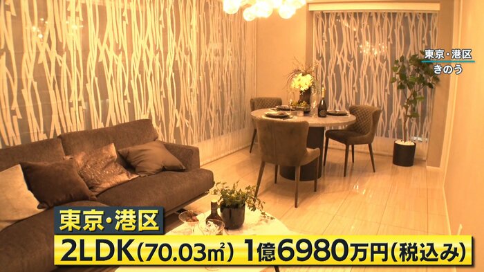 さらに、東京・港区にあるこちらの物件は築15年の地上41階建て、広さ70平方メートルほどの2LDK。中古ですが価格はなんと1億6980万円。リノベーションにも高級な資材を使用したといいます。