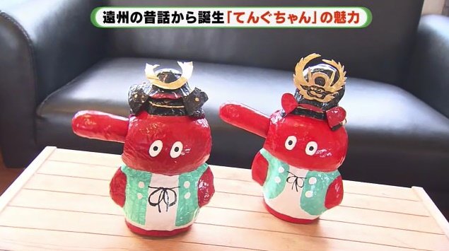 ゆれる鼻に、つぶらな瞳。真っ赤な顔をした“てんぐ”のキャラクター、その名も「てんぐちゃん」。張り子の鼻の部分が、ぶんぶんと動く。