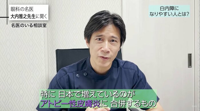 アトピー性皮膚炎の患者が増えているので、それに合併する白内障患者、若年の患者さんが私どものクリニックにも増えています。