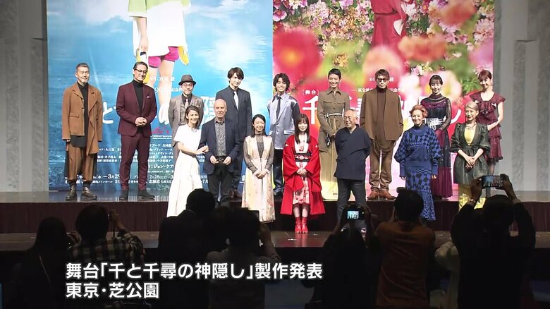 舞台「千と千尋の神隠し」の製作発表が行われ、Wキャストで主人公・千尋を演じる橋本環奈さん(22)と上白石萌音さん(23)らメインキャスト陣、演出家が出席した。